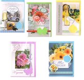 Karnet B6 z naklejką. Życzenia (10szt) MIX