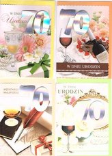 Karnet B6 z naklejką 70-te urodziny (10szt) MIX