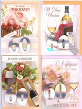 Karnet B6 z naklejką 60-te urodziny (10szt) MIX