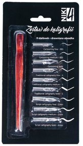 Zestaw do kaligrafii 9 stalówek + drew. obsadka