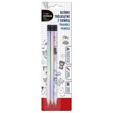 Ołówek trójkątny z gumką i nadrukiem 3szt. KIDEA