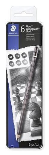 Grafitové tužky "Mars Lumograph", sada, 6 tvrdostí, šestihranná, umělecká, STAEDTLER