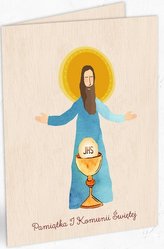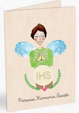 Karnet drewniany C6 Komunia chłopiec + koperta