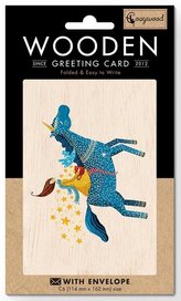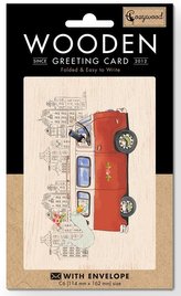 Karnet drewniany C6 + koperta Kobieta z dmuchawcem