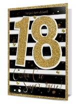 Karnet 18-te urodziny biało-czarne paski i złoty HM200-1739