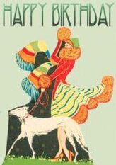 Karnet B6 brokat z kopertą Urodziny Spacer z psem