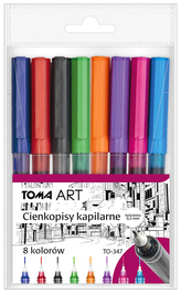 Cienkopisy 0,5 mm kapilarne 8 kolorów, Toma