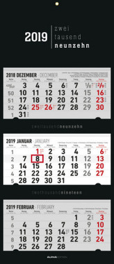 3-Monatskalender, faltbar, Black 2019