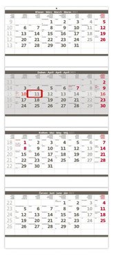 Kalendář nástěnný 2023 - Čtyřměsíční skládaný/šedý