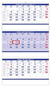 Kalendář nástěnný 2023 - Tříměsíční modrý, skládaný