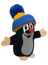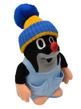 Krtek s kulichem modro-žlutým plyš 15cm na kartě