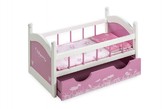 Postýlka pro panenku se šuplíkem dřevo růžová v krabici 52,5x29x32cm