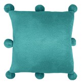 Sametový povlak na polštář BLUMI s bambulkami - 40 x 40 cm - modrozelený