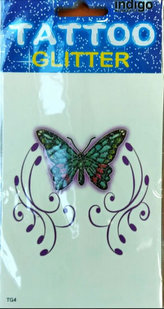 Tetování Modrorůž. motýlek s fial. ornamentem