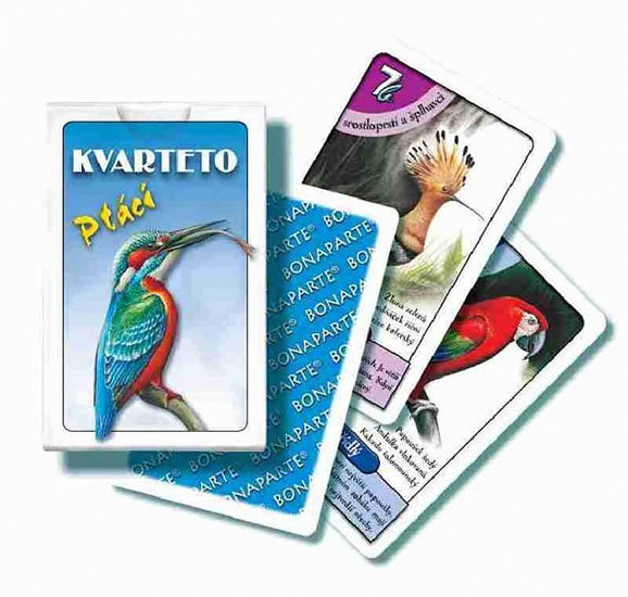 Oblíbená dětská hra kvarteto s obrázky ptáků. przeczytaj całość