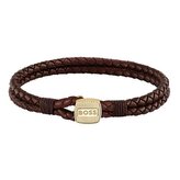 Hnědý pletený náramek z kůže Seal 1580667 Hugo Boss / Délka: 17,5 cm