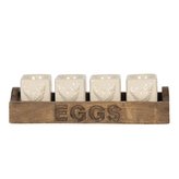 Čtyři keramické kalíšky na vajíčko na podnose CHICKEN