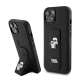 Karl Lagerfeld Gripstand Saffiano Karl & Choupette Pins - pouzdro pro iPhone 15 Plus (černé)