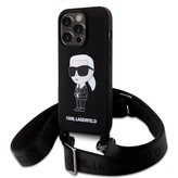 Karl Lagerfeld Liquid Silicone Crossbody Ikonik Kryt iPhone 15 Pro Max černý