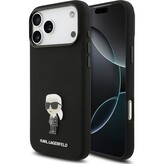 Karl Lagerfeld Liquid Silicone Metal Ikonik kryt iPhone 17 Pro Max černý