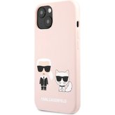 Karl Lagerfeld and Choupette Liquid Silicone Cover iPhone 13 světle růžový