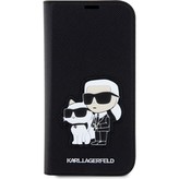 Karl Lagerfeld PU Saffiano Karl and Choupette NFT flipové pouzdro pro iPhone 13 Pro černé