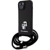 Karl Lagerfeld Liquid Silicone Karl and Choupette Heads Kryt iPhone 15 Plus černý