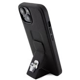 Karl Lagerfeld Saffiano Grip Stand Metal Logo Zadní Kryt pro iPhone 15 Black