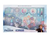 Lip Smacker Disney Frozen balzám na rty 2 x 3,4 g + rozjasňující krém 3 x 0,8 g a 6 x 0,9 g + lesk na rty 4 x 2 g + lak na nehty 2 x 4,25 ml + paletka tvářenek 0,75 g + paletka tvářenky a rozjasňovače 0,75 g + prsten 2 ks + spona do vlasů + samolepky na n