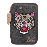 Penál s výbavou Top Model Tygr, třípatrový, šedý
