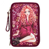 Penál s výbavou Top Model, Talita, vínový, růžové třpytky, s přívěskem, 0411231_A