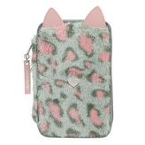 Penál s výbavou Top Model, Zeleno-růžový, leopardí vzor, uši