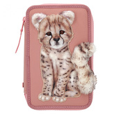 Penál s výbavou Top Model, Starorůžová s gepardem, třípatrový | 20 x 13 x 7 cm | 0411219_A
