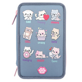 Penál 3 patra s výbavou Top Model, Modro-růžový, náladové kočičky, světelný efekt