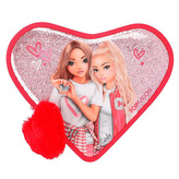 Penál ve tvaru srdce Top Model, Růžový, se vzorem srdcí a flitry, Fergie + Candy