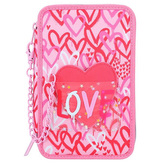 Penál 3 patra s výbavou Top Model, Růžový, se vzorem srdcí