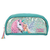 Jednoduchý penál Fantasy Model, Víla a jednorožec, s flitry, třpytivý, světle modrý