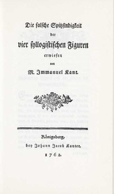 Die falsche Spitzfindigkeit der vier syllogistischen Figuren /Versuch den Begriff der negativen Größen in die Weltweisheit einzu