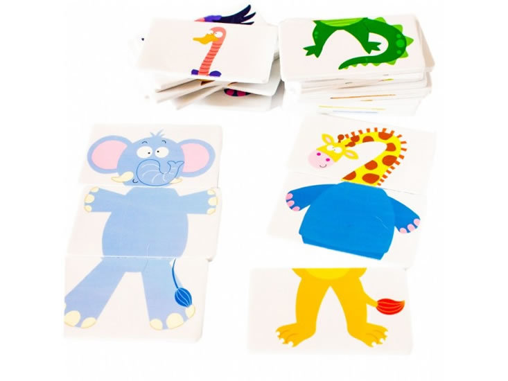 Skládačka do vany obsahuje 9 postaviček rozdělených do 27 částí. Umožňuje dítěti skládat postavy z dílů, které k sobě patří, nebo naopak vytvářet legrační postavičky z dílů různých postav. Jednotlivé dílky plavou na hladině a po navlhčení je možné je přichytit na dlaždičky nad vanou. Hračka...