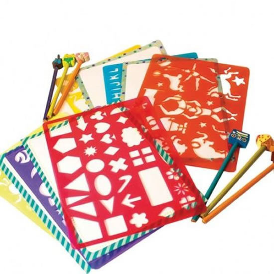 Sada kreslicích šablon a kreslicích potřeb pro malé výtvarníky v rozkládacím úložném pouzdru s držadlem pro snadné přenášení. Díky praktickému pouzdru můžete sadu vzít s sebou kamkoli a zabavit tak vaše dítě i na cestách, v restauraci, na dovolené apod. Sada obsahuje 6 kreslicích šablon se 150 motivy, 20 listů ozdobných papírů a 6 barevných pastelek s 6 mazacími gumami originálních tvarů a barev. Vhodné od 3 let.