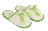 Australské meríno pantofle 520g/m2 - bílý beránek/zelená stuha - velikost 37-38