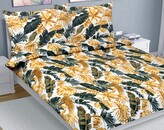 Povlečení bavlna na dvoudeku - Listy palmové zlatá, šedá, bílá - 180x200, 2ks 70x90 cm