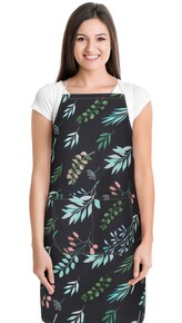 Kuchyňská zástěra ADÉLA - Lístky na černé - zástěra 67x84 cm
