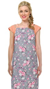 Kuchyňská zástěra ADÉLA - Květy růže růžová, šedá - zástěra 67x84 cm