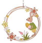 Věnec dřevěný se zajíčkem na zavěšení 23 cm