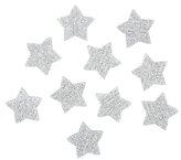 Hvězda stříbrná s lepíkem 5 cm akryl s glitry (10 ks)