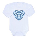 Dětské body s potiskem New Baby Lidový vzor modré srdíčko - velikost 62 (3-6m)
