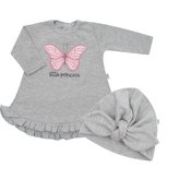 Kojenecké šatičky s čepičkou-turban New Baby Little Princess šedé - velikost 68 (4-6m)