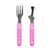 Dětská nerezová lžíce a vidlička Akuku růžová