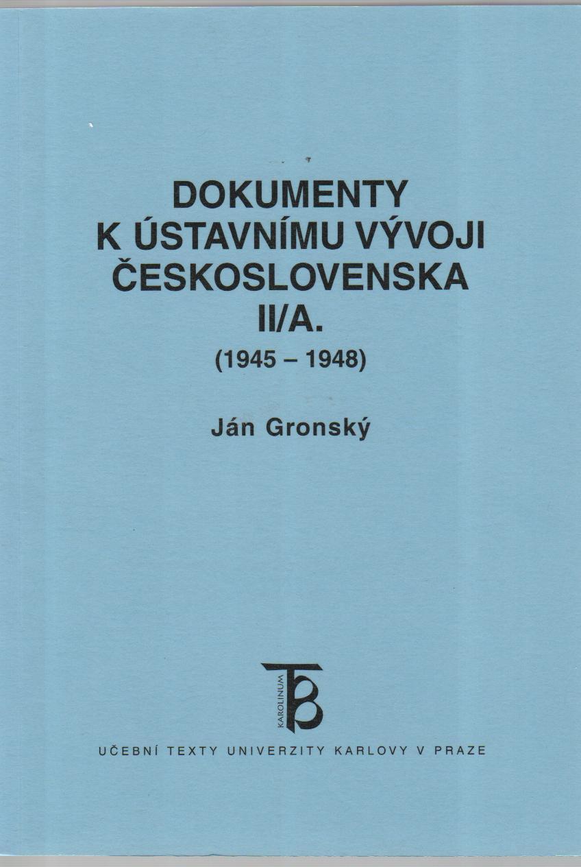 Díl II/A Dokumentů k ústavnímu vývoji Československa zahrnuje období 1945 - 1948 . Zejména obsahuje všechny nejdůležitější dekrety prezidenta republiky z roku 1945 a ústavní zákony přijaté Prozatímním národním shromážděním a Ústavodárným národním shromážděním až do května 1948. Do knihy jsou zařazeny i další významné dobové dokumenty (mj. vládní programy z let 1945, 1946, 1948).